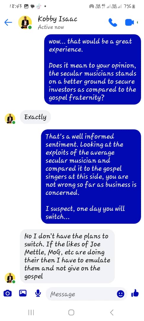 Kobby Isaac: “No, I don’t have the plans to switch. If the likes of Joe Mettle, MoG, etc are doing their then I have to emulate them and not give up on the gospel.”